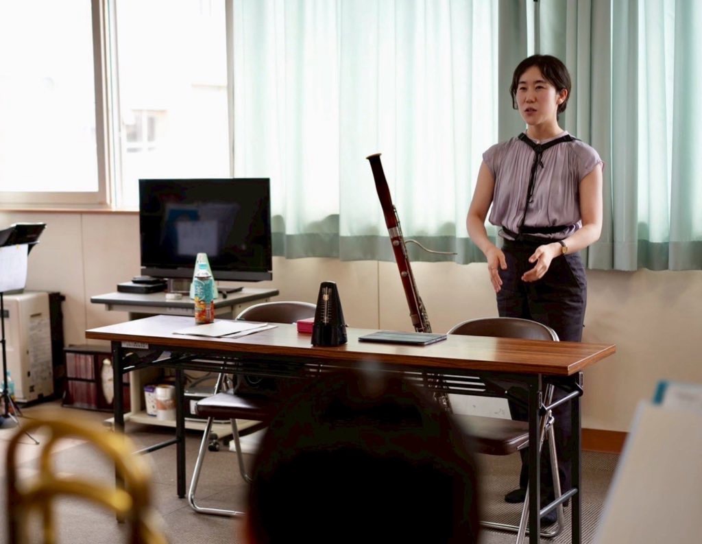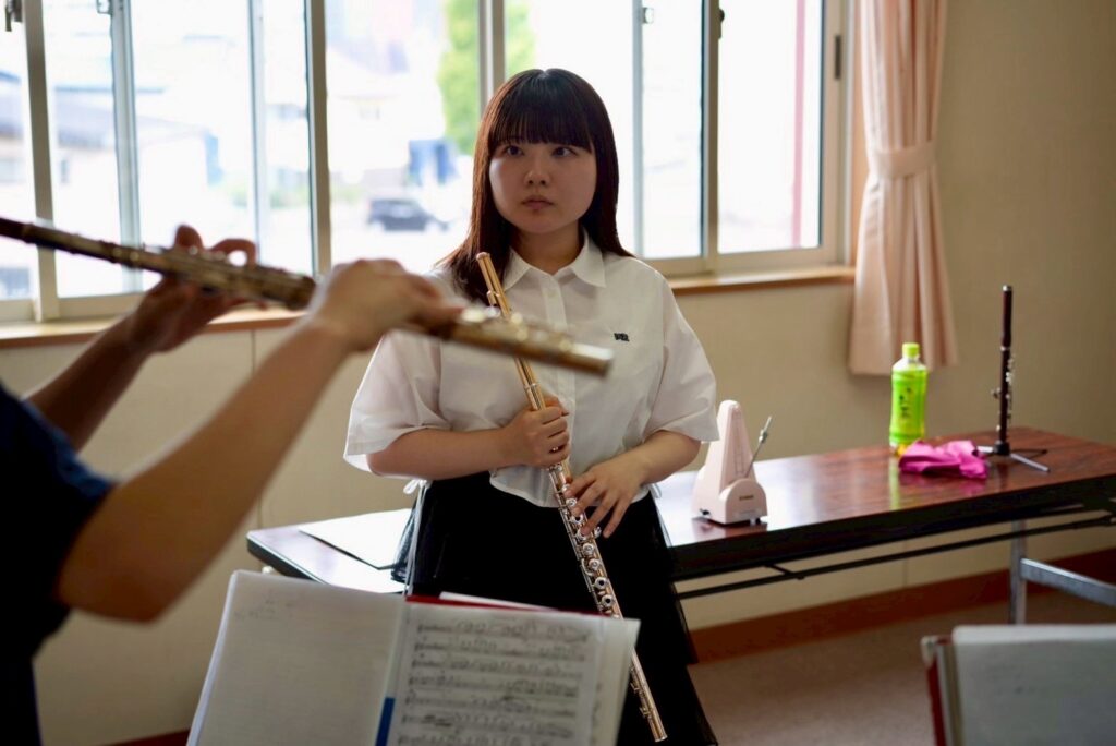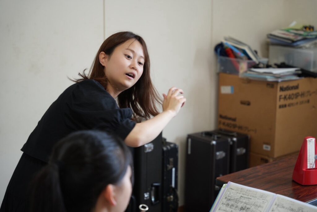 高校での指導では、基礎練習やコンクールの課題曲、生徒たちがつまずいているポイントなどを一緒に見させていただきました。それぞれの学校にはそれぞれのカラーがあり、その個性が本当に魅力的でした。どの学校の生徒たちも真剣に音楽に向き合っていて、その姿に心を打たれ、私自身も自然と熱が入り、より一層力を込めて指導に臨むことができました。